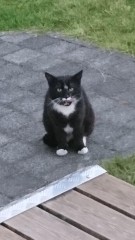 Felix läuft schon als Katzenkind alleine rum. Was aus seinen Geschwistern wurde, will man gar nicht wissen. Vielleicht hatte er Glück und konnte entkommen.... Dann hat er häufig Macchiato verprügelt. Der ist gutmütig und kam oft geschlagen nach Hause. Da hatte Mama die Faxen dicke und ließ ihn kastrieren. Das Einfangen hat glücklicherweise sehr schnell geklappt. Wir hatten ihn trotz allem Ärger angefüttert. Nach der OP hatte er die Wahl. Nach 2 Tagen haben wir die Tür aufgemacht und weg war er. Aber nichts desto trotz kommt er zum Fressen. Den Eingriff hat er uns verziehen.
